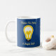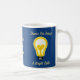 Reconocer a sus empleados y darles un impulso moral con este café o taza de té. Con un fondo azul oscuro, a ambos lados de la taza hay una lámpara de luz amarilla brillante con un espacio en el centro que podrás personalizar con tu nombre de negocio. "Gracias por ser una bombilla brillante" rodea la bombilla y se puede personalizar según tus necesidades. Diseño original C. McGouldrick