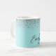 Aqua Azul - Turquesa Destello Brillo Metal Acabado Monograma Nombre e Inicial Taza de Café o Tazón. Esto hace el regalo perfecto para cumpleaños 16, boda, despedida de soltera, aniversario, baby shower o fiesta de soltera para alguien que ama el lujo y los estilos chic.
