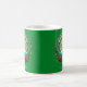El tazón de café en un estilizado árbol celta de la vida, intrincadamente detallado con ramas entrelazadas y raíces formando un círculo, rodeado de nudos celtas ornamentales. Las hojas verdes vibrantes y el tronco dorado-marrón simbolizan la armonía y la interconexión