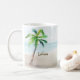 Café tropical con una playa de color agua y palmeras en tonos agua, azul, verde azulado, turquesa y beige de arena. Puede personalizarse fácilmente con su nombre o iniciales, sólo tiene que hacer clic en "personalizar". Coordina con mi colección de bodas de Paraíso Tropical.