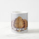 Ilustracion de colores pastel metálicos de otoño en medio de una hilera de siluetas de árboles de otoño. Hay un árbol metálico de hojas doradas en medio de la fila. El fondo es blanco y el suelo también es blanco.