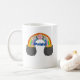 Esta taza de arco iris con RRRPP presenta un hermoso arco iris colorido con una olla de oro en ambos extremos y la palabra Orgullo