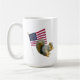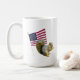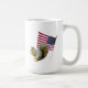 Una ardilla ondea la bandera estadounidense en esta taza patriótica.