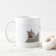 Vista frontal cerrada de un calamar con una nuez en las patas delanteras, mirando directamente a ti. Un animal curioso y gracioso. La ardilla simboliza la practicidad, la necesidad de hacer provisiones planetarias. Coffee mug. Puede cambiar o eliminar la imagen y el texto de la plantilla.