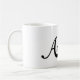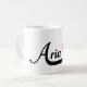 Aria mug con corazón de amor. La letra A es una imagen que el otro texto puede cambiarse para cualquier nombre que comience con la letra A.