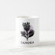 Esta elegante taza de cerámica blanca presenta un diseño floral negro minimalista con detalles delicados y un sutil acento de lavanda detrás de la flor. Personalizada con el nombre "SANDRA" en tipografía clásica y negrita, esta taza combina elegancia y simplicidad, lo que la convierte en un regalo perfecto o un recuerdo personal para cualquiera que aprecie la estética moderna y refinada.