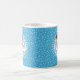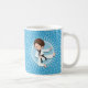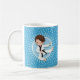 Este diseño presenta un lindo niño de artes marciales de cabello marrón con cinturón negro. De fondo azul.