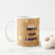 logotipo artístico y artesano texto taza de café taza para aficionados a las artes y artesanías en tu vida Texto fuente en azul, melocotón rosa con diseño de texto azul disponible en otros artículos ideal para los aficionados a la costura pintura tejer recortes impresión de reserva u otro hobby artesanal