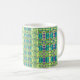 Vertical columns of an assortment of flowers,stems,leaves, and petals are arranged next to and within vertical columns of cupflower shapes.