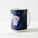 Cute astronaut bear floating around Earth on a starry night sky—whimsical space illustration perfect for a kids’ or space-lover coffee mug.