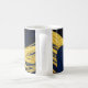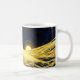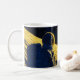 Un ilustracion digital de una astronauta en un estilo de arte de duotones de azul y oro.