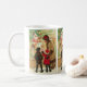 Vintage illustration of a mother with children watching a toy store window, filled with dolls and toys for Christmas.