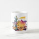 Ilustracion abstracto de la puesta de sol del desierto acuático mexicano con planta de cactus, hierba y vista de montaña