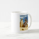 Coffee mug muestra el sentimiento por el café de un lado - me encanta una aventura. Después del café. El otro lado muestra una escena de la novela #9 de Vic Challenger - Un lugar salvaje