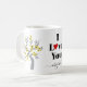 Aves de amor amarillas iluminando el árbol de cerezo sakura gris con flores Café Mug. Una taza personalizada con la frase "Te amo" y nombra un regalo perfecto para el Día de San Valentín.