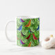 Esta taza tiene un diseño natural de aves en hojas.