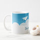 Aviones de papel en vuelo sobre nubes blancas esponjosas representan pasar a cosas más grandes y mejores. La frase "El cielo es el límite" se imprime en las nubes, pero puedes cambiar el mensaje a cualquier texto preferido. Un gran regalo para alguien con grandes goles. Disponible con productos a juego.