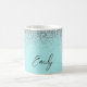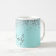 Azul Acuático - Purpurina Brillo Metal Pulido Monograma Nombre e Inicial Taza de Café o Tazón. Esto hace el regalo perfecto para cumpleaños 16, boda, despedida de soltera, aniversario, baby shower o fiesta de soltera para alguien que ama el lujo glamoroso y los estilos chic.