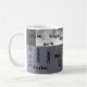 Sumérjase en la sofisticación global con nuestra taza de café personalizada, mostrando la belleza de mega ciudades famosas contra un fondo gris y azul geométrico calmado. Añada un toque personal incorporando sus preciadas imágenes y representando orgullosamente su ciudad, país o destino preferido. Con tamaños diversos y fuentes sofisticadas que acentúan el nombre de cada ciudad, crean un acento decorativo de moda distintivo. Transforme su hogar en un santuario de elegancia con esta exquisita mezcla de personalización y encanto mundial. Hobinishop