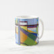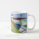 taza de café colorida con las ilustraciones del artista abstracto Gregg Rosen.