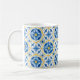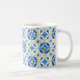 💛 💙 Café Mug con impresionantes Azulejos de acuarela. Impresionante estampado de azulejos con motivos florales de azul y amarillo, al estilo de Azulejo español, motivos tradicionales, colores y patrones audaces, inspirados en el folclore,