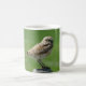 Taza con la imagen de la Lechuza de Terrero. Cuando era niño, hace unos cuarenta años, estas adorables lechuzas se encontraban por todas partes en las praderas del sureste de Alberta, Canadá. No hacen madrigueras ellas mismas, sino que se apropian de las cuevas abandonadas de tejones. Desafortunadamente, la contaminación por DDT en los setenta y ochenta y la pérdida de áreas de anidación debido a la agricultura las han convertido en una rareza.