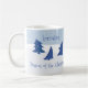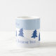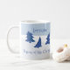 El caprichoso diseño de árbol de Navidad azul está "ramificando" las cartas a los tazones. Este sencillo y divertido diseño es perfecto para tomar café, cacao o cualquier bebida de vacaciones.