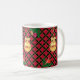 Navidades de bola de oro, conos de pino y pájaro cardinal sobre fondo negro, dorado y rojo a cuadros Coffee Mug. ¡Hay más de lo que parece!