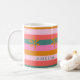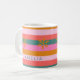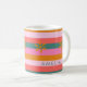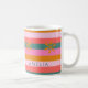 Acogedores Navidades Banda brillante y copo de nieve nombre personalizado taza de café. Un regalo de vacaciones perfecto para té, café o chocolate caliente en las noches de invierno. Prepárate para celebrar la temporada con estilo con esta divertida y alegre jarra a rayas con colores Navidades inesperados: rosa, verde verde azulado, amarillo dorado y coral. Un moderno patrón de rayas coloridas añade un toque extra. Hace un regalo perfecto para Navidades.