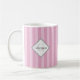 Mug monogramada geométrica para personalizar con el nombre de su elección en un sobre lila y fondo rayado de caramelo de flores de cerezo. Parte de nuestra colección de patrones Geométricos Dusky Rose. Un regalo perfecto o añadir algo de estética rosada a tu vida.