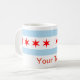 Mug personalizada con bandera de la ciudad de Chicago, Illinois, bandera de rayas blancas y azul claro con cuatro estrellas rojas