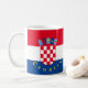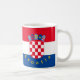 El diseño del tazón de café de la bandera de Croacia muestra la bandera de Croacia en ambos lados, junto con la palabra, Croacia con brillantes letras amarillas.