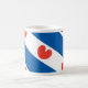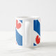 Bandera de Frisia, provincia de los Países Bajos. Se compone de rayas diagonales azules y blancas; en las rayas blancas hay pompeblêden rojo, hojas de la liga amarilla, que pueden recordarnos a los corazones, pero según las instrucciones oficiales "no deben tener forma de corazón".