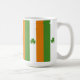 Un ilustracion de una bonita bandera irlandesa del Día de San Patricio con trébol de shamrock verde. Este sencillo y adorable diseño es un regalo para los amantes del color naranja blanco verde, los amantes de los símbolos de la buena suerte y los amantes del campo irlandés. Personalice o personalizar esta taza clásica agregando su propio texto.