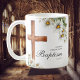 Celebra los preciados momentos del bautismo con nuestra Floral acuarela cruza el bautismo café tazón. Esta encantadora taza presenta un hermoso diseño floral acuático y una delicada cruz, lo que lo convierte en el regalo perfecto para el bautismo o el bautizo de un recién nacido. Hecho con amor por nuestra marca impresa a pedido, es una maravillosa manera de abrazar el significado religioso de esta ocasión especial. ¡Añade un toque de fe y belleza a tu rutina diaria de café!