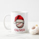 Baseball Ball Red Santa Hat Name Christmas Coffee Mug. Fun baseball ball with a red Santa hat and a custom name.
