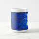 Detalle de la pintura "Cuidar del alma" que muestra a un ángel de la guarda volador cargando a un bebé dormido. El otro lado de la taza muestra la luna con estrellas nocturnas brillantes. El cuadro completo muestra un ángel cargando a un bebé mientras el ángel vuela sobre una aldea dormida debajo. Hay una luna llena que brilla con la misma radiancia del ángel para iluminar. Las estrellas y las ventanas del pueblo se tambalean en el fondo. Esta imagen tiene la intención de rendir homenaje a las personas de nuestras vidas que son ángeles personales. Nos llevan a través de la noche cuando somos emocionalmente y/o físicamente tan frágiles como un bebé. Haz una taza o una taza de ángel personalizado con tus propias opciones personalizadas. Usa el botón "Personalizar" para hacer tus cambios y crear regalos especiales de ángel para tus seres queridos.