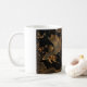 Un ilustracion digital de un pez betta, con contornos dorados audaces y acentos marrones en un campo negro que contrasta.