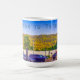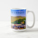 La colección de souvenirs de viajes de ZoeSPEAK incluye algunas fotografías originales de centros de bienvenida en los Estados Unidos que visitamos. La vista panorámica de este Mug muestra el estado de Tennessee en Estados Unidos y su Centro de Bienvenida, mirando hacia las montañas soleadas y el cielo azul. Los autos y camiones de los viajeros están estacionados a lo largo de la pendiente, y hay un cartel de "Bienvenida a Tennessee" que lleva al Centro.