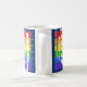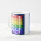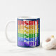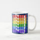 El diseño de la taza de café que dice "Bisbee" es de color azul oscuro pero tiene tinta blanca, roja, naranja, amarilla, verde, azul y violeta. Es ideal para tomar café o té por la mañana. También hay microondas y lavavajillas.