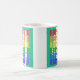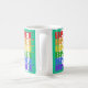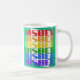El diseño de la taza de café que dice "Bisbee" es de color turquesa pero tiene tinta blanca, roja, naranja, amarilla, verde, azul y violeta. Es ideal para tomar café o té por la mañana. También hay microondas y lavavajillas.