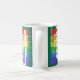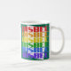 El diseño de la taza de café que dice "Bisbee" es color turquesa oscuro pero tiene tinta blanca, roja, naranja, amarilla, verde, azul y violeta. Es ideal para tomar café o té por la mañana. También hay microondas y lavavajillas.