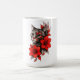 Taza De Café Black and White Cat with Bright Red Blooms