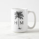This coastal inspired monogrammed ceramic mug features a preppy black palm palmetto tree on white with a monogram that you can personalize with your choice of initials on each side. Great for personalized gift bags and party favors.