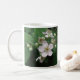 Esta hermosa taza muestra una fotografía de una viña de mora negra cubierta de flores. Estas hermosas flores se ven blancas a lo lejos, pero si miras de cerca, los pétalos tienen un matiz rosa pálido. El diseño se muestra en una taza blanca básica, pero también está disponible en una gama de otros estilos y colores de tazas.