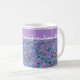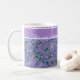 Una elegante taza de café blanca para personalizar, con un bonito estampado de violetas, una de las flores del mes de nacimiento de febrero, de una pintura de acuarela de Judy Adamson. Parte de la colección 'Sweet Violets' de Posh & Painterly.