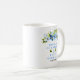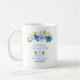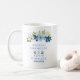 This beautiful and elegant wedding mug features watercolor baby blue and navy blue flowers with foliage. The text combines handwritten script and serif fonts for a stylish and modern look. This is perfect for a spring or summer rustic wedding.