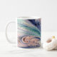A mesmerizing marbled design featuring swirling feather-like patterns in blue, green, and peach tones, accented with dark blue dots for added texture and depth—perfect for artistic prints, decor, or campaign visuals