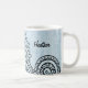 Disfruta de tu bebida favorita con este Mehndi Motif Mug con un intrincado diseño de henna india en un fondo de aflicción azul. Añade texto personalizado, como tu nombre, a este diseño étnico para darle un toque personal.