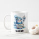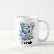 ¡Difundan alegría por las vacaciones con este muñeco de nieve azul personalizado, Feliz Rótulo navideño! Esta encantadora taza de café de Navidades incluye un adorable muñeco de nieve vestido con un gorra azul y una bufanda acogedores, sosteniendo un signo festivo de 'Feliz Navidad' y una brillante varita de nieve. Fácilmente personalizar con cualquier nombre para convertirlo en un regalo de vacaciones perfecto, un cálido saludo o una deliciosa adición a su decoración invernal.